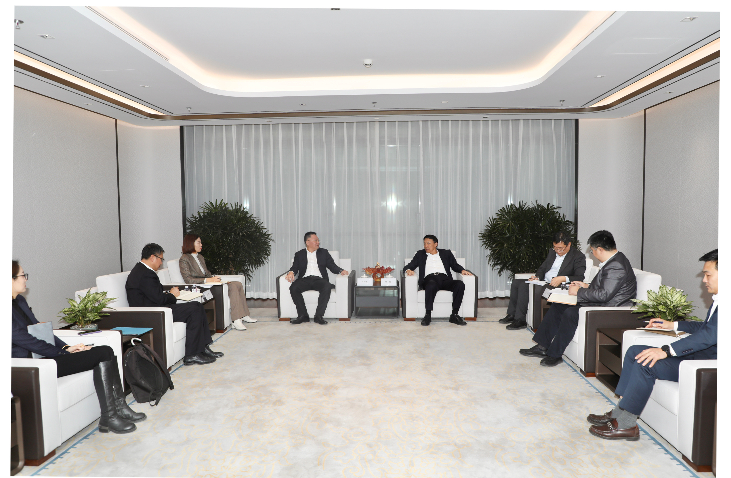 2024年1月2日,華夏銀行重慶分行行長朱永利、副行長張春艷、投資銀行部總經(jīng)理鄧淼一行到華夏金租拜訪,交流洽談銀租聯(lián)動業(yè)務(wù)合作。華夏金租黨委書記陳傳龍、總裁沈宗慶、副總裁鄭靜等出席座談交流。
